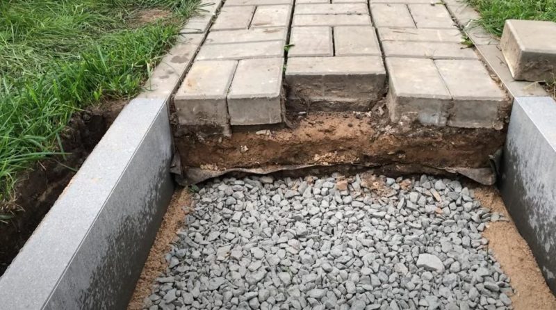 - Отсутствие геотекстиля. Без разделительного слоя песок проникает в щебень, щебень – в грунт, нарушая дренаж и выносливость. Всегда укладывайте геотекстиль между слоями и выравнивайте его без складок.