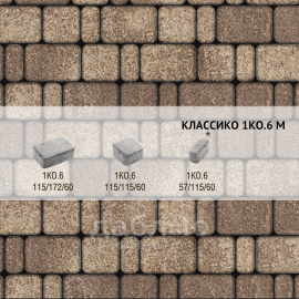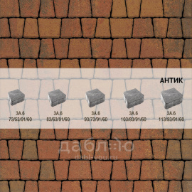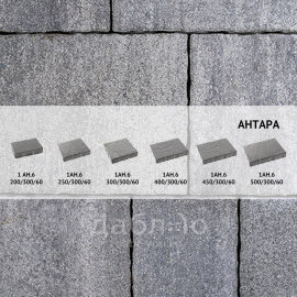 Вибропресованная бетонная брусчатка "Выбор". Завод выпускает тротуарную плитку толщиной 40, 60, 80 и 100 мм. Толщина 40 мм используется для пешеходной зоны, 60 мм для парковок. Ассортимент форм не знает границ - от классики 100*100 мм до крупноформатных плит 500*300 мм.