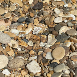 Морская галька отличается от речной в нескольких аспектах: морская галька более гладкая и круглая из-за воздействия морских волн, тогда как речная может быть более угловатой. Морская часто более разнообразна по цвету и матовая, а речная – с более насыщенными цветами и блестящей текстурой. Также морская галька может быть мелкой, в то время как речная чаще бывает более плотной и крупной.