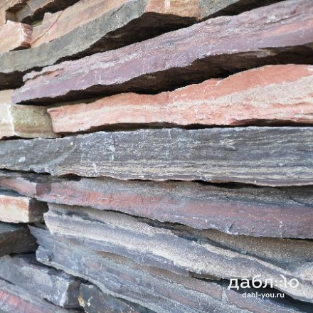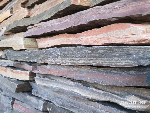 Алевролит горбушка. Алевролитовый сланец является самым прочным сланцем, который можно использовать как для облицовки фасадов и цоколей в формате плитки горбушки или полоски, так и для мощения в формате брусчатки. Алевролит имеет разнообразные оттенки от светло-розового до темно-фиолетового. Фасад здания, облицованный таким природным камнем, будет прекрасно гармонировать с окружающей природой.Фактура: лапша