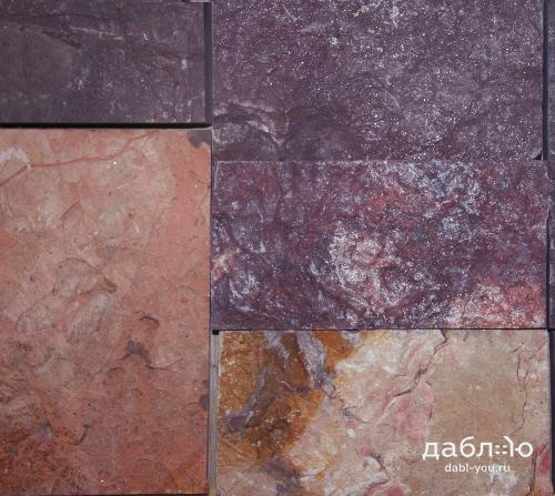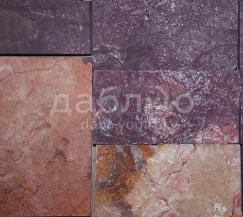 Алевролит плитка с заколом 30-40 мм. Алевролитовый сланец является очень прочным и морозостойким материалом, который можно использовать как для облицовки фасадов, так и для мощения. Алевролит в обработке плитка заколотая отлично подойдет для облицовки Вашего дома. А красный оттенок камня будет отлично сочетаться с различными цветовыми решениями других облицовочных материалов.Толщина: 20-30 мм