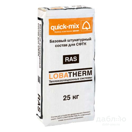 Базовый штукатурный состав для СФТК Quick-Mix RAS, 25 кг. Минеральный раствор для нанесения армированной шпаклевки. Водоотталкивающие свойства. Для наружных и внутренних работ.- Прочность на сжатие ˃ 6,5 МПа