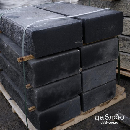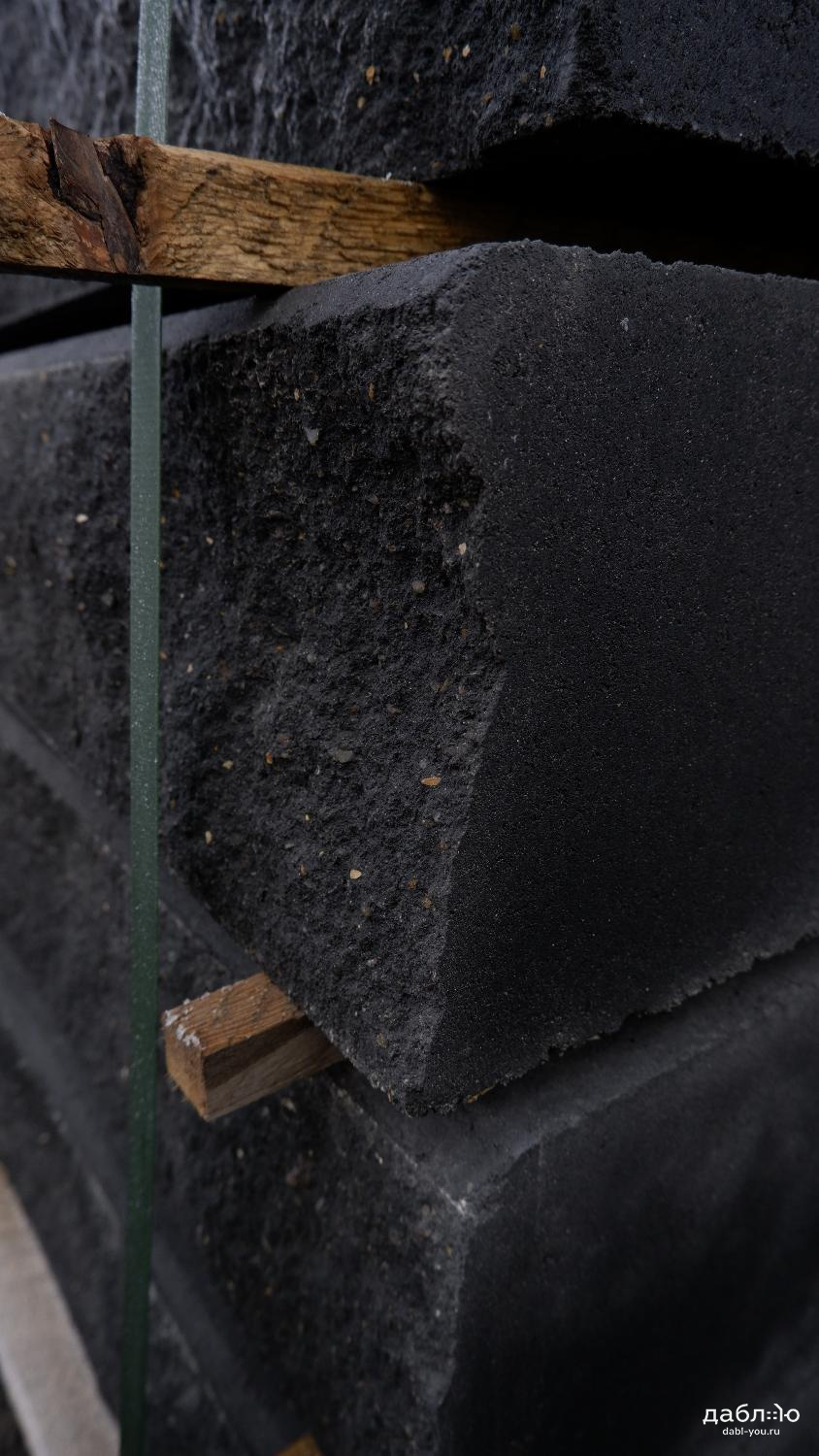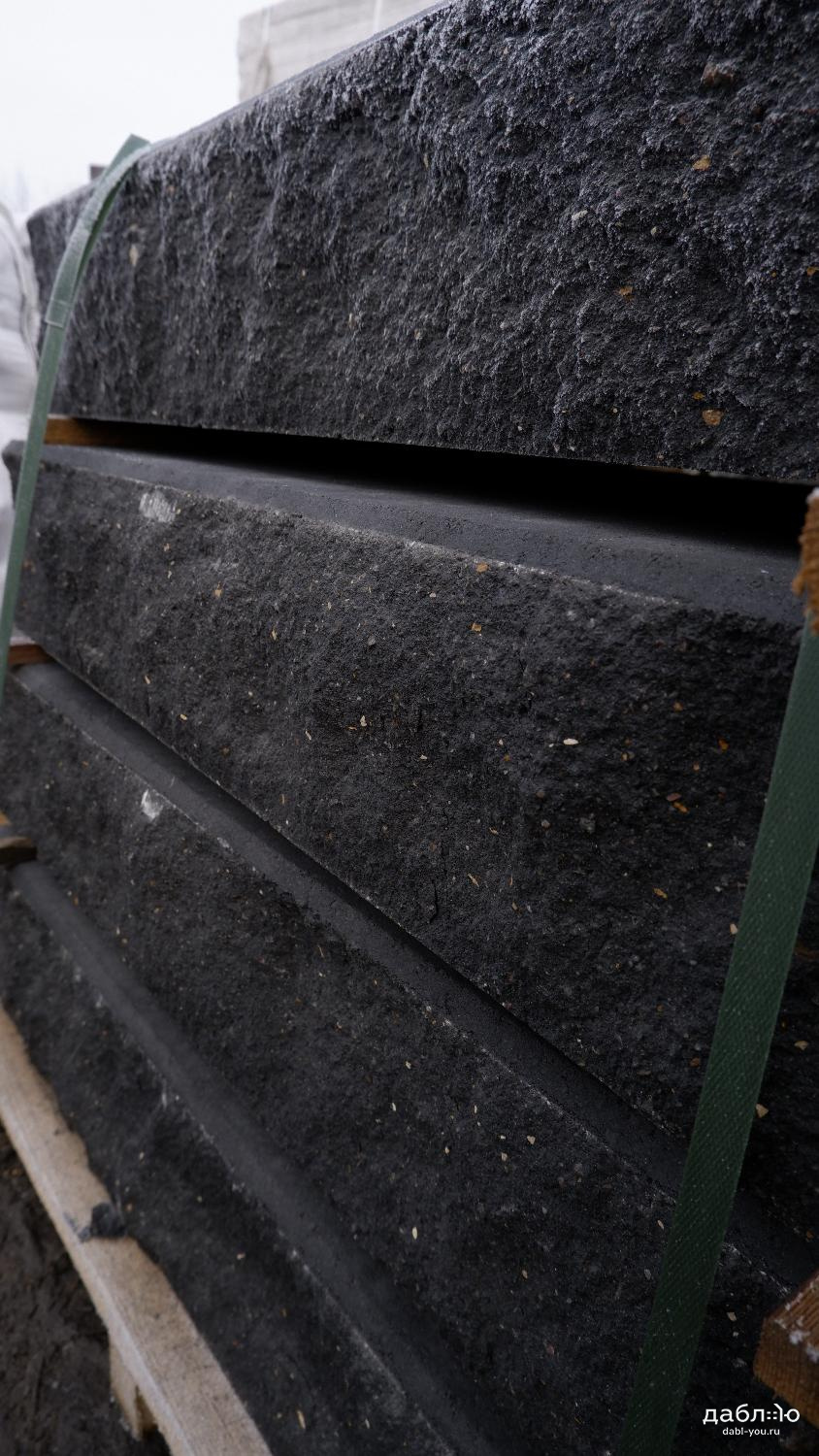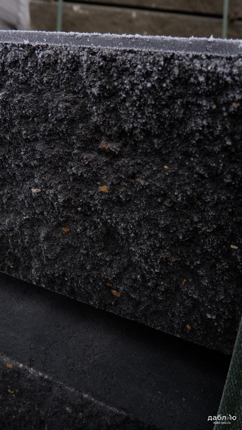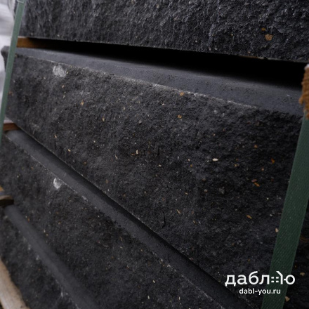 Бетонная ступень SteinRus черная, 1000х380х180 мм. Монолитная ступень – готовое ландшафтное решение, не требует облицовки, предназначена для строительства наружных профильных и фронтальных лестниц. Готовые марши с «колотой» поверхностью эффектно сочетаются с художественной облицовкой фасада и тротуарной плиткой.- Класс прочности на сжатие – не менее B30