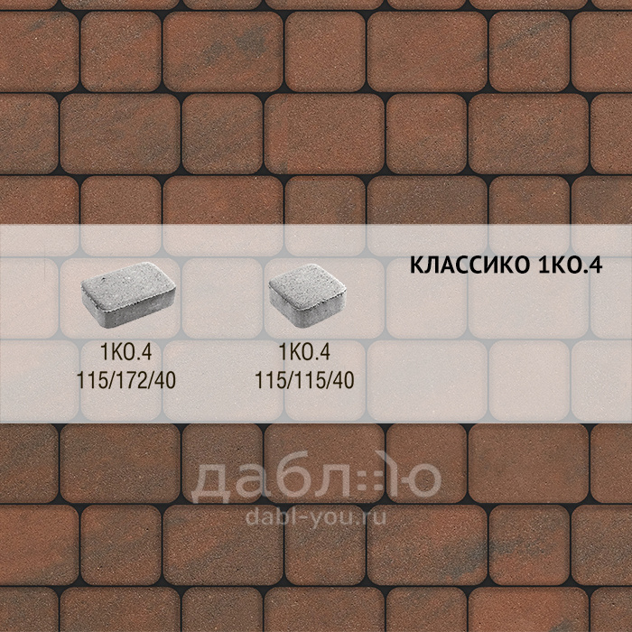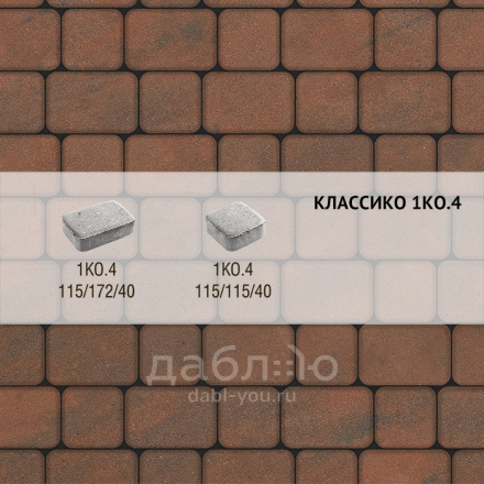 Брусчатка Выбор Классико Листопад 1КО.4 Клинкер. Бетонная тротуарная плитка из серии Листопад. Ее отличает характерная пестрота и насыщенность цвета.Высота: 40 мм