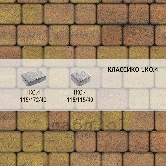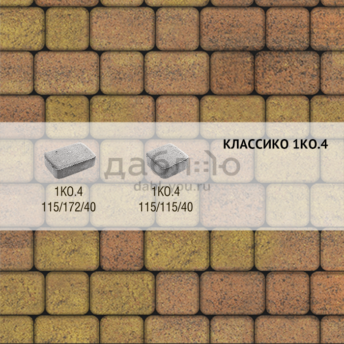 Брусчатка Выбор Классико Листопад 1КО.4 Саванна. Бетонная тротуарная плитка из серии Листопад. Ее отличает характерная пестрота и насыщенность цвета.Высота: 40 мм