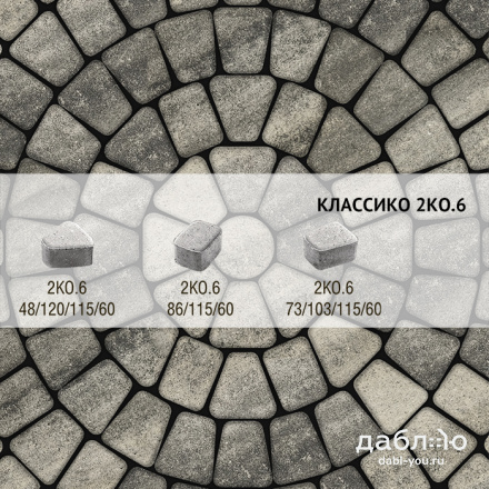 Брусчатка Выбор Классико Листопад 2КО.6 М Антрацит. Бетонная тротуарная плитка из серии Классико. Эта коллекция отличается сходством с натуральным камнем и правильной геометрической формой.Высота: 60 мм
