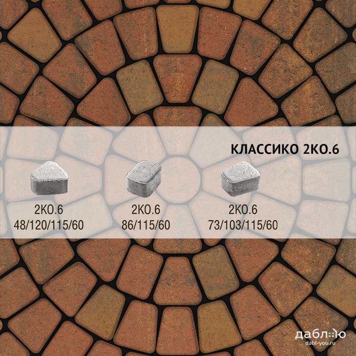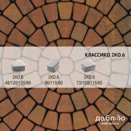 Брусчатка Выбор Классико Листопад 2КО.6 М Арабская ночь. Бетонная тротуарная плитка из серии Классико. Эта коллекция отличается сходством с натуральным камнем и правильной геометрической формой.Высота: 60 мм
