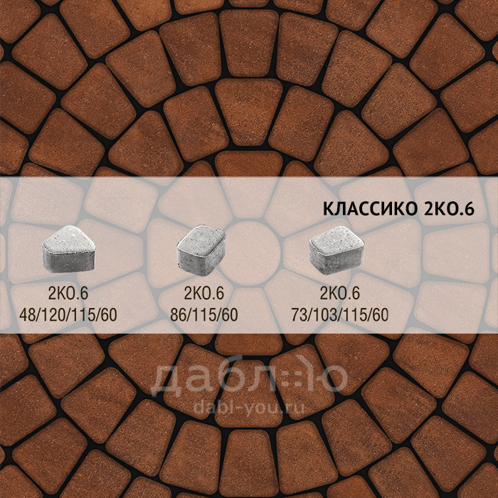 Брусчатка Выбор Классико Листопад 2КО.6 М Барселона. Бетонная тротуарная плитка из серии Классико. Эта коллекция отличается сходством с натуральным камнем и правильной геометрической формой.Высота: 60 мм