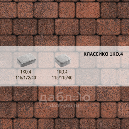 Брусчатка Выбор Классико Листопад гранит 1КО.4 Клинкер. Прекрасная альтернатива клинкерной брусчатке - вибропрессованная тротуарная плитка отечественного завода Выбор. Шикарный красно-пестрый цвет. В коллекцию входят 2 типоразмера со скругленными краями. Верхнее покрытие брусчатки - гранитная крошка. Она впресована в брусчатку более чем на 1 см в глубину. Срок службы такой брусчатки более 25 лет. Толщина 40 мм используется только для мощения пешеходных зон.Высота: 40 мм