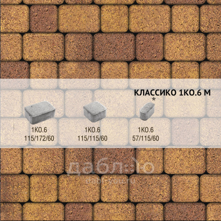 Брусчатка Выбор Классико Листопад гранит 1КО.6 Осень. Бетонная тротуарная плитка из серии Классико. Эта коллекция отличается сходством с натуральным камнем и правильной геометрической формой.Высота: 60 мм