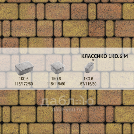 Брусчатка Выбор Классико Листопад гранит 1КО.6 Саванна. Бетонная тротуарная плитка из серии Классико. Эта коллекция отличается сходством с натуральным камнем и правильной геометрической формой.Высота: 60 мм
