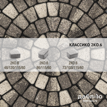 Брусчатка Выбор Классико Листопад гранит 2КО.6 М Антрацит. Бетонная тротуарная плитка из серии Классико. Эта коллекция отличается сходством с натуральным камнем и правильной геометрической формой.Высота: 60 мм