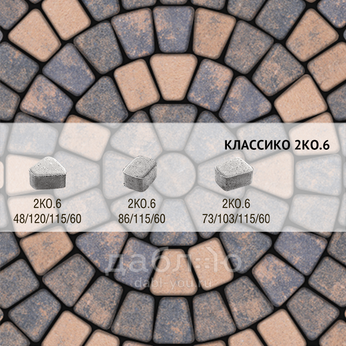 Брусчатка Выбор Классико Листопад гранит 2КО.6 М Мустанг. Бетонная тротуарная плитка из серии Классико. Эта коллекция отличается сходством с натуральным камнем и правильной геометрической формой.Высота: 60 мм