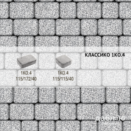Брусчатка Выбор Классико Стоунмикс 1КО.4 Бело-черный. Вид данной брусчатки состоит из двух форм - квадрата 115*115 и прямоугольника 115*172 с округлыми краями. Брусчатка толщиной 40 мм пригодится для мощения дорожек и площадох с пешей нагрузкой. Цвет брусчатки Выбор - не выгорает и не выцветает поз воздействием атмосферных явлений, гарантия 13 лет.Высота: 40 мм