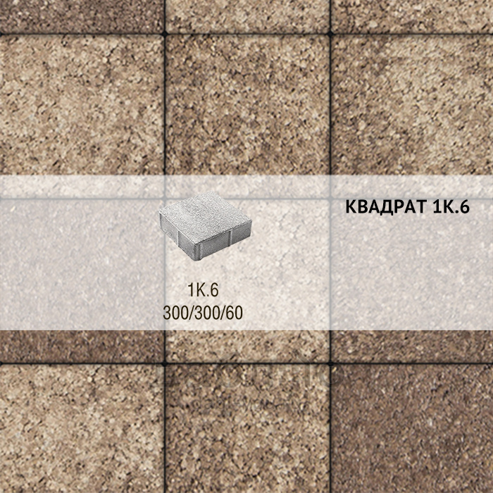 Брусчатка Выбор Квадрат Листопад 1К.6 Хаски. Крупноформатная бетонная брусчатка 300*300 мм, с гладкой фактурой пестрого оттенка. Толщина 60 мм позволяет применять ее для дорожек и парковок. Удобна в укладке благодаря большому размеру и наличию фаски. Коричневый цвет брусчатки отлично сочетается другими материалами для ландшафтного дизайна и мощения.Высота: 60 мм