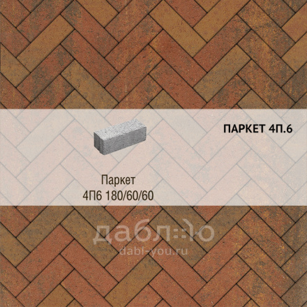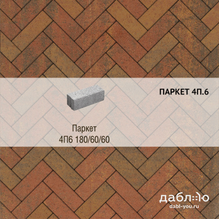 Брусчатка Выбор Паркет Листопад 4П.6 Арабская ночь. Бетонная тротуарная плитка из серии Паркет. Правильная форма этой плитки дает возможность создавать разные рисунки для мощения, при этом отлично сочетаясь с формами других коллекций плитки.Высота: 60 мм