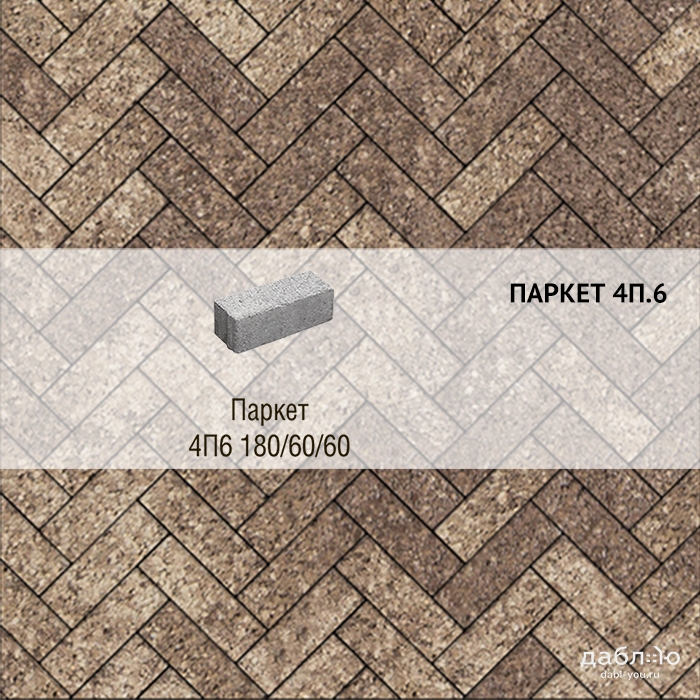 Брусчатка Выбор Паркет Листопад 4П.6 Хаски. Бетонная тротуарная плитка из серии Паркет. Правильная форма этой плитки дает возможность создавать разные рисунки для мощения, при этом отлично сочетаясь с формами других коллекций плитки.Высота: 60 мм