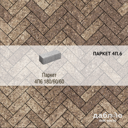 Брусчатка Выбор Паркет Листопад гранит 4П.6 Хаски. Бетонная тротуарная плитка из серии Паркет. Правильная форма этой плитки дает возможность создавать разные рисунки для мощения, при этом отлично сочетаясь с формами других коллекций плитки.Высота: 60 мм