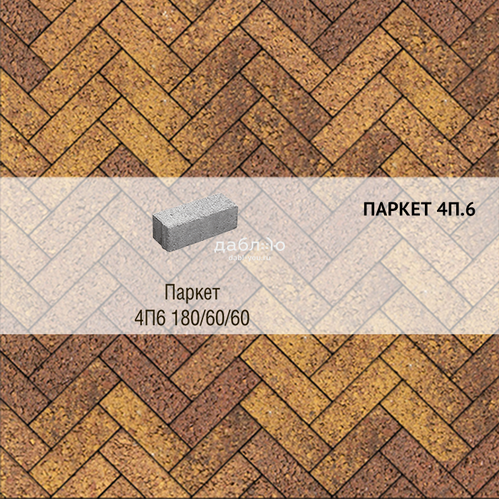 Брусчатка Выбор Паркет Листопад гранит 4П.6 Осень. Бетонная тротуарная плитка из серии Паркет. Правильная форма этой плитки дает возможность создавать разные рисунки для мощения, при этом отлично сочетаясь с формами других коллекций плитки.Высота: 60 мм