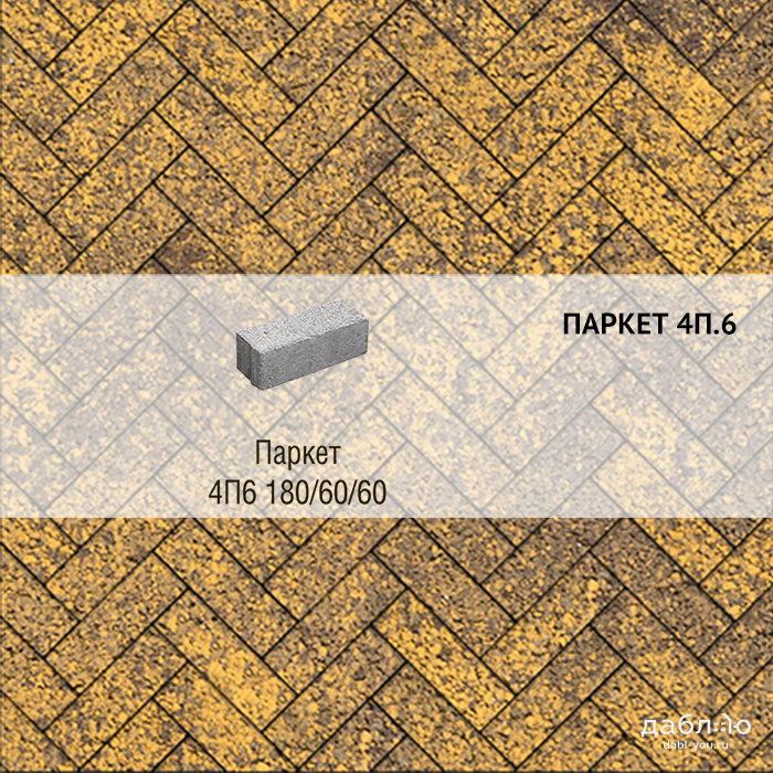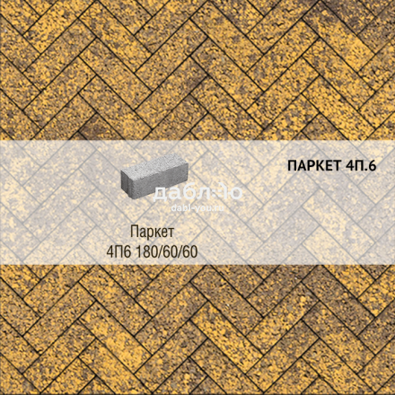 Брусчатка Выбор Паркет Листопад гранит 4П.6 Янтарь. Бетонная тротуарная плитка из серии Паркет. Правильная форма этой плитки дает возможность создавать разные рисунки для мощения, при этом отлично сочетаясь с формами других коллекций плитки.Высота: 60 мм