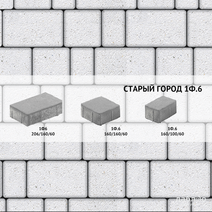 Брусчатка Выбор Старый город Стоунмикс 1Ф.6 Белый. Бетонная брусчатка из коллекции Стоун-Микс от отечественного производителя Выбор. Данная коллекция отличается своей поверхностью из неокрашенной гранитной крошки. Цвет выглядит однородным и насыщенно-белым. Формат 1Ф.6 называется Старый Город, состоит из трех размеров камней. Такая размерность создает эффект старинных мостовых. Брусчатка прочная и морозостойкая, устойчива к истиранию. Срок службы более 25 лет.Высота: 60 мм