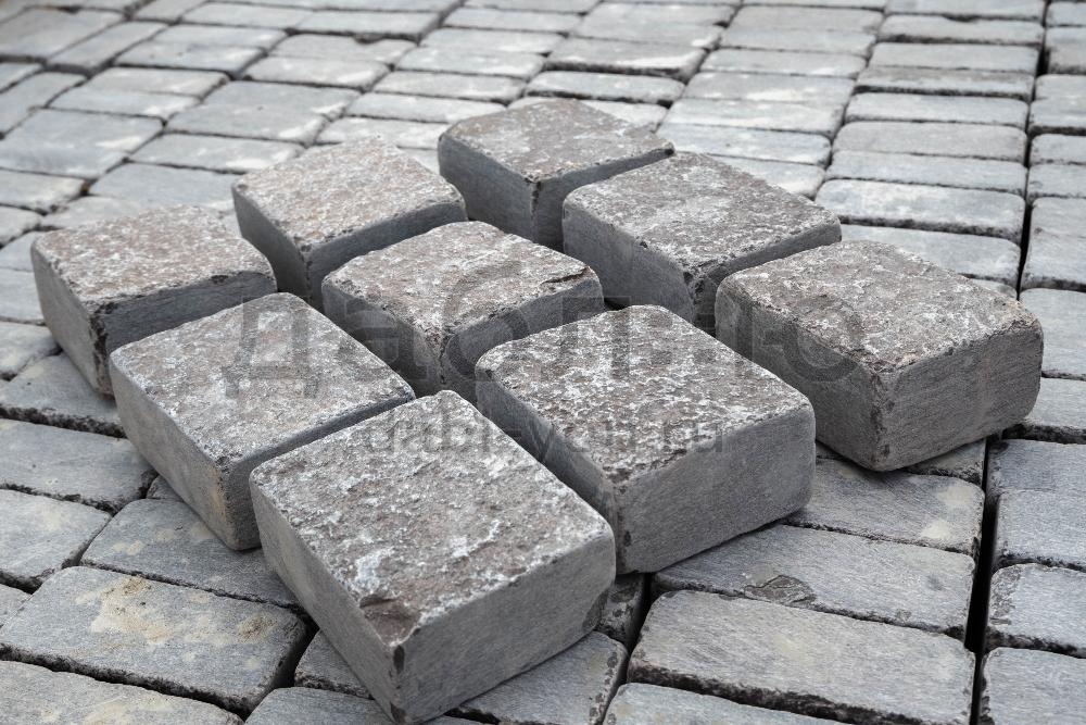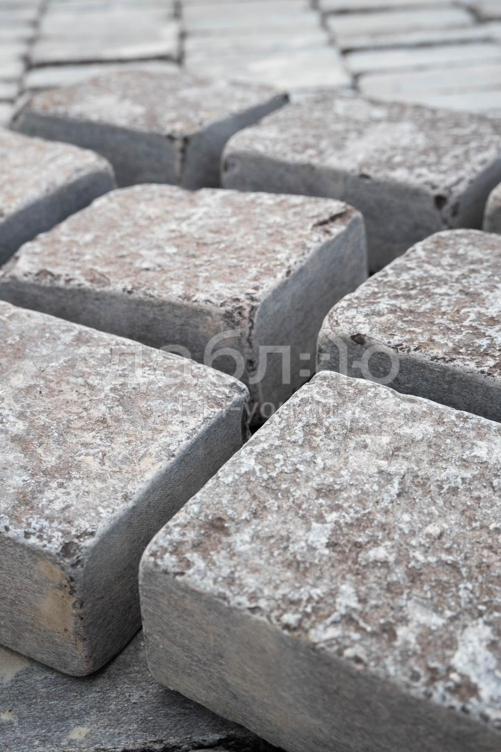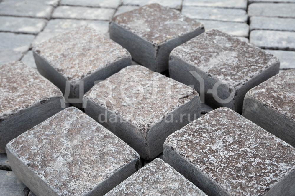 Брусчатка из лемезита галтованная 100x100x40-50 мм