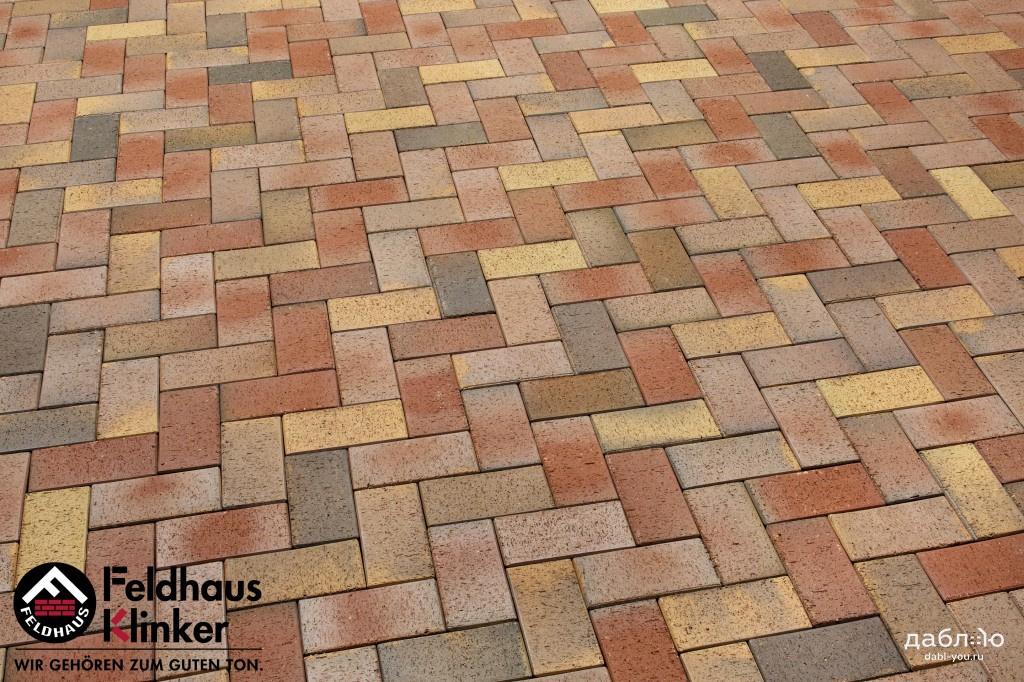Брусчатка клинкерная Feldhaus Klinker P415SKF "gala solea", красно-пестро-желтый, с оттенками, 200x100x40 мм