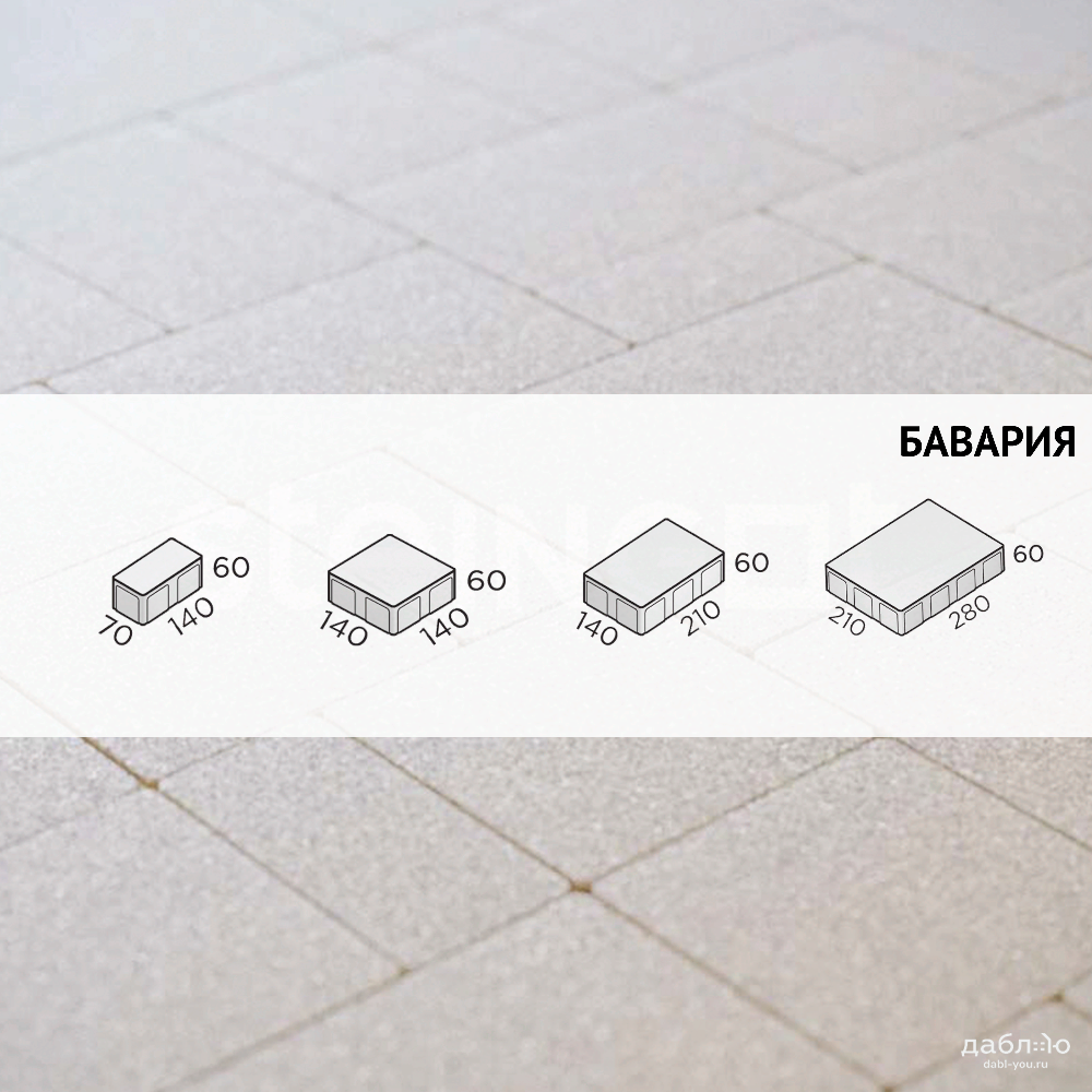 Брусчатка Steingot Бавария белая. Эта брусчатка состоит из камней четырех размеров, подходящих для любых архитектурных решений. Поверхности плитки при этом идеально ровная для более приятного пользования. Продажа брусчатки производится кратно целым поддонам!- Высота: 60 мм