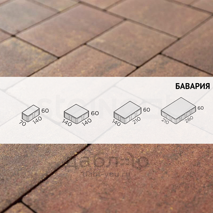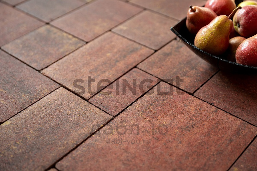 Брусчатка Steingot Бавария Терракота. Эта брусчатка состоит из камней четырех размеров, подходящих для любых архитектурных решений. Поверхности плитки при этом идеально ровная для более приятного пользования. Продажа брусчатки производится кратно целым поддонам!- Высота: 60 мм