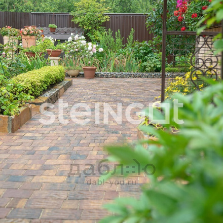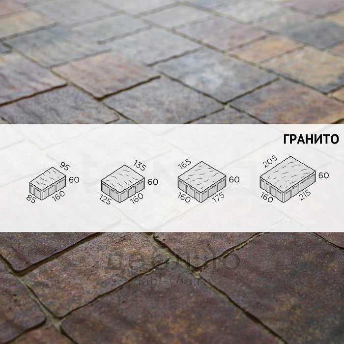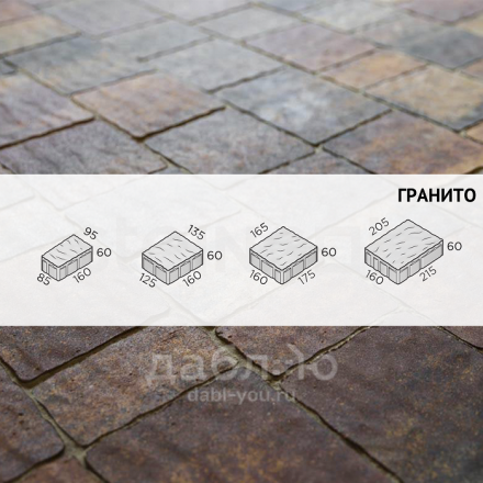 Брусчатка Steingot Гранито Блэнд. Природный колотый камень является вдохновителем дизайна этой тротуарной плитки. Специально разработанная фактура поверхности обеспечивает максимальное сцепление с обувью и колесами во время дождя и гололедицы. Продажа брусчатки производится кратно целым поддонам!- Высота: 60 мм