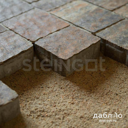 Брусчатка Steingot Гранито Штайн Бронз. Природный колотый камень является вдохновителем дизайна этой тротуарной плитки. Специально разработанная фактура поверхности обеспечивает максимальное сцепление с обувью и колесами во время дождя и гололедицы. Продажа брусчатки производится кратно целым поддонам!- Высота: 60 мм