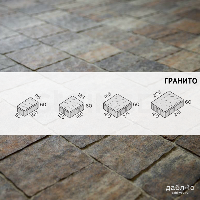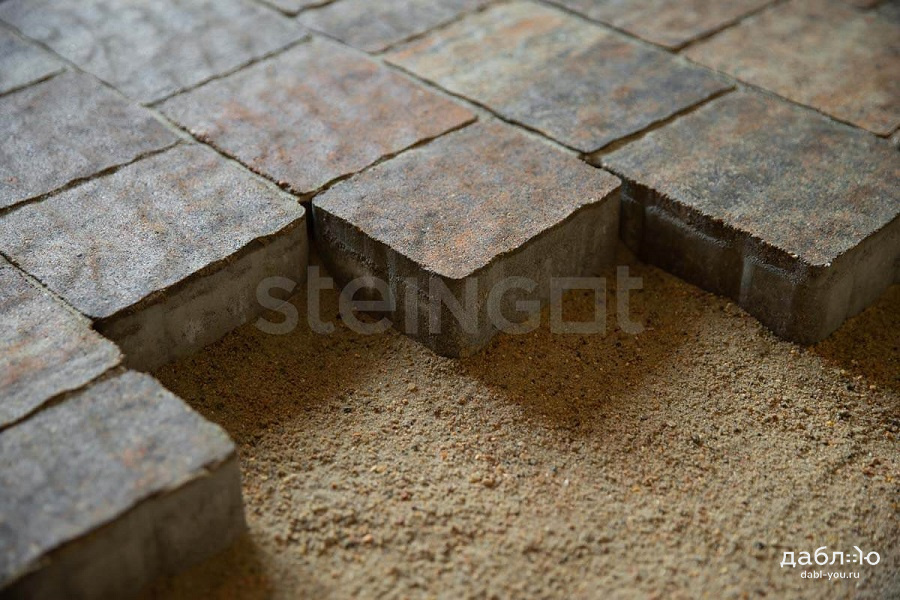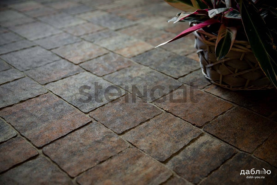 Брусчатка Steingot Гранито Штайн Бронз. Природный колотый камень является вдохновителем дизайна этой тротуарной плитки. Специально разработанная фактура поверхности обеспечивает максимальное сцепление с обувью и колесами во время дождя и гололедицы. Продажа брусчатки производится кратно целым поддонам!- Высота: 60 мм