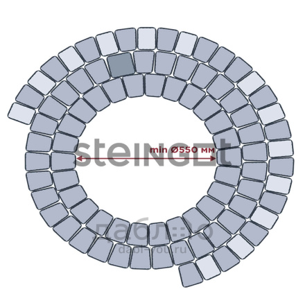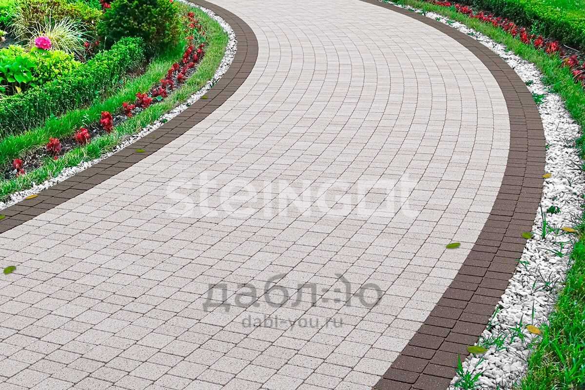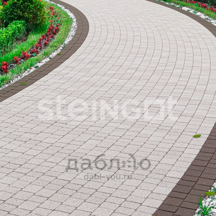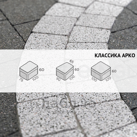 Брусчатка Steingot Классика Арко Bianco Nero. Тротуарная плитка в классическим стиле, включающая два прямых камня и один клиновидный. Данная форма очень удобно укладывается и в ряд, и в окружность, что позволяет выложить ее около фонтана, водоема или сделать дорожку более плавной. Может быть изготовлена в любом цвете из палитры производителя. Продажа брусчатки производится кратно целым поддонам!- Высота: 60 мм