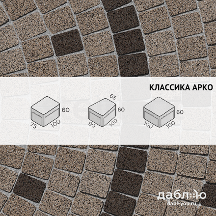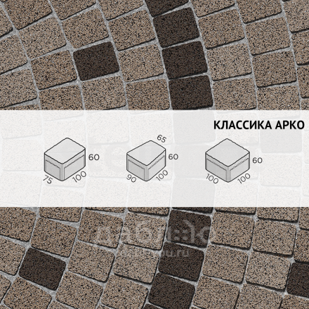 Брусчатка Steingot Классика Арко Bruno. Тротуарная плитка в классическим стиле, включающая два прямых камня и один клиновидный. Данная форма очень удобно укладывается и в ряд, и в окружность, что позволяет выложить ее около фонтана, водоема или сделать дорожку более плавной. Может быть изготовлена в любом цвете из палитры производителя. Продажа брусчатки производится кратно целым поддонам!- Высота: 60 мм
