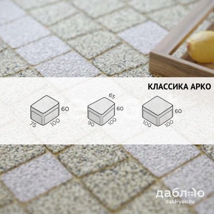 Брусчатка Steingot Классика Арко Loto Bianca. Тротуарная плитка в классическим стиле, включающая два прямых камня и один клиновидный. Данная форма очень удобно укладывается и в ряд, и в окружность, что позволяет выложить ее около фонтана, водоема или сделать дорожку более плавной. Может быть изготовлена в любом цвете из палитры производителя. Продажа брусчатки производится кратно целым поддонам!- Высота: 60 мм