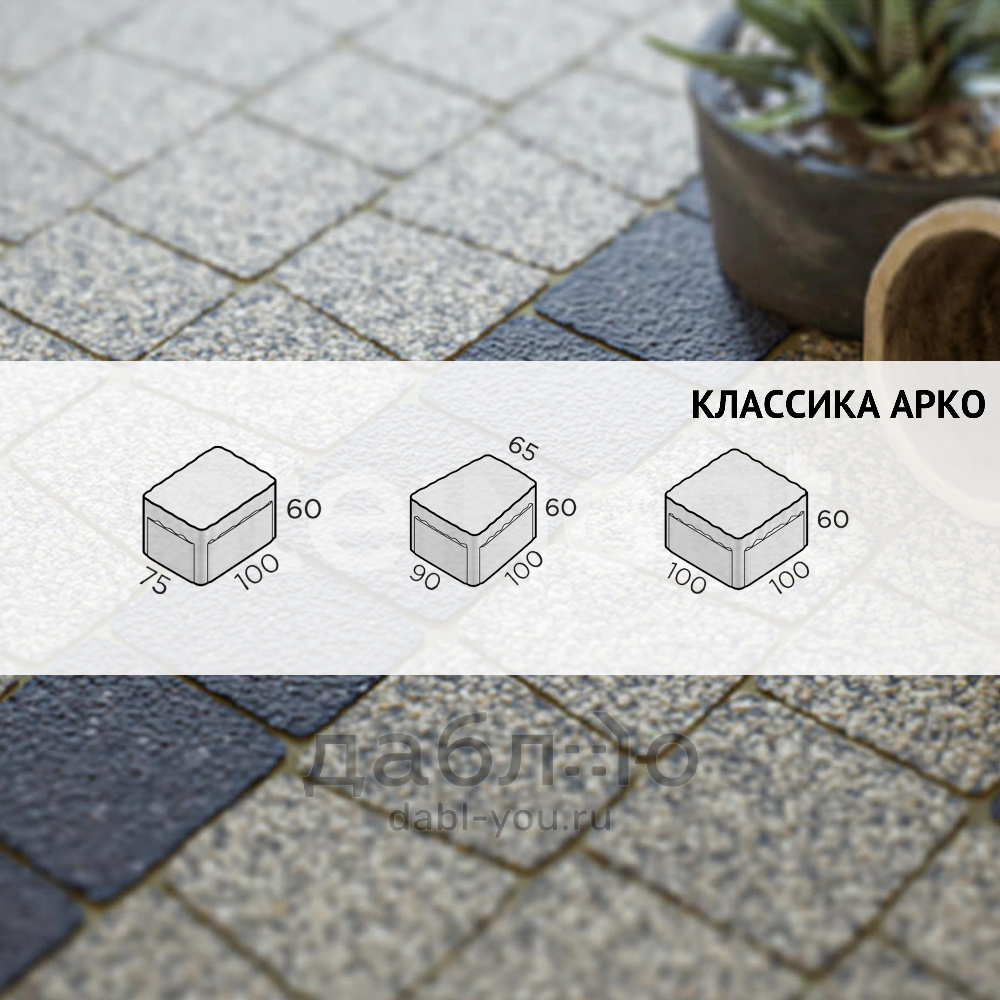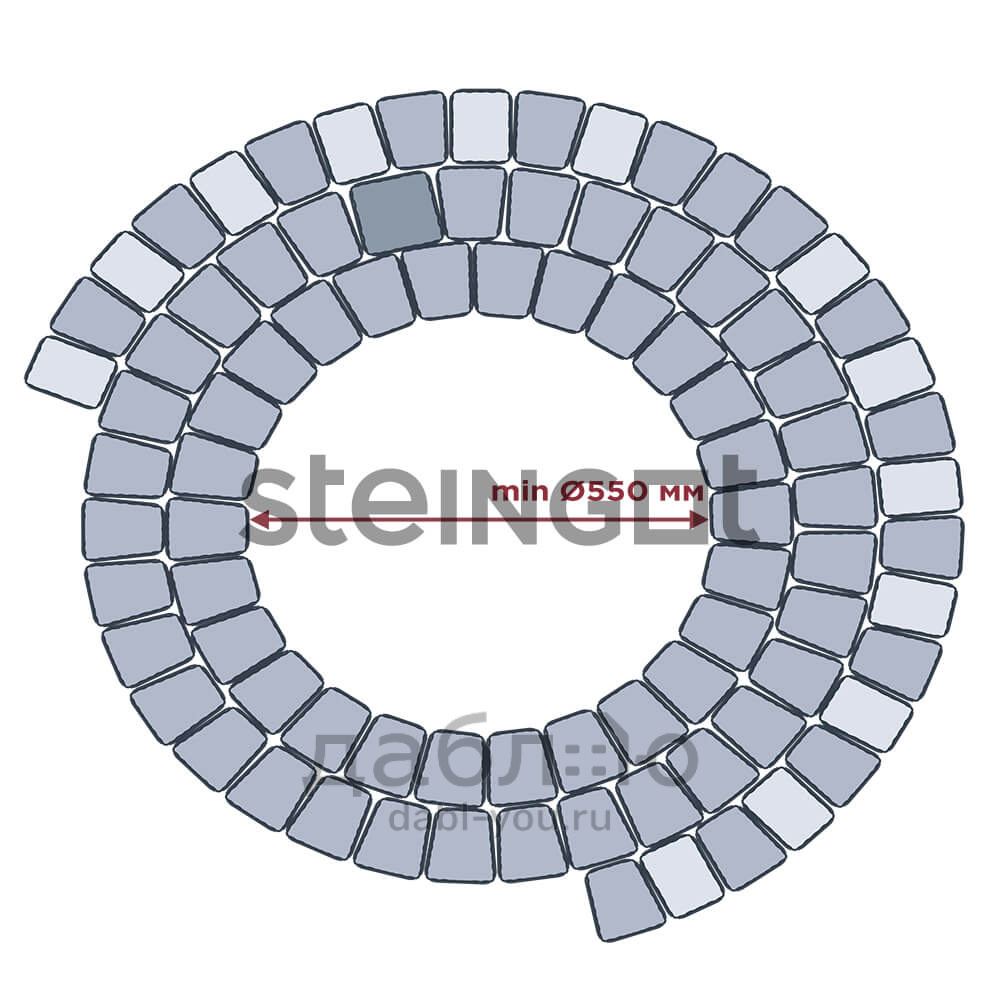 Брусчатка Steingot Классика Арко Stella Nera. Тротуарная плитка в классическим стиле, включающая два прямых камня и один клиновидный. Данная форма очень удобно укладывается и в ряд, и в окружность, что позволяет выложить ее около фонтана, водоема или сделать дорожку более плавной. Может быть изготовлена в любом цвете из палитры производителя. Продажа брусчатки производится кратно целым поддонам!- Высота: 60 мм