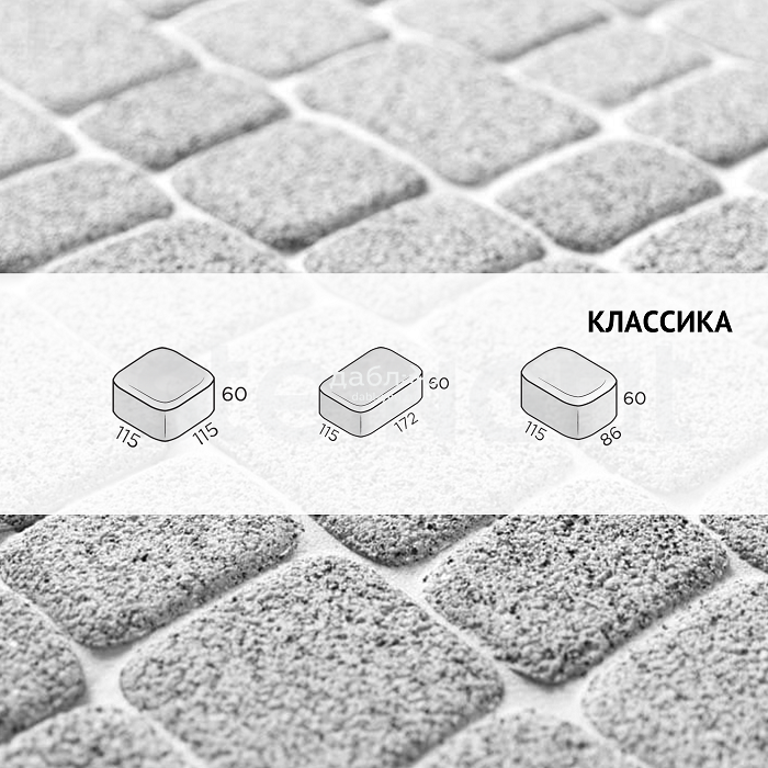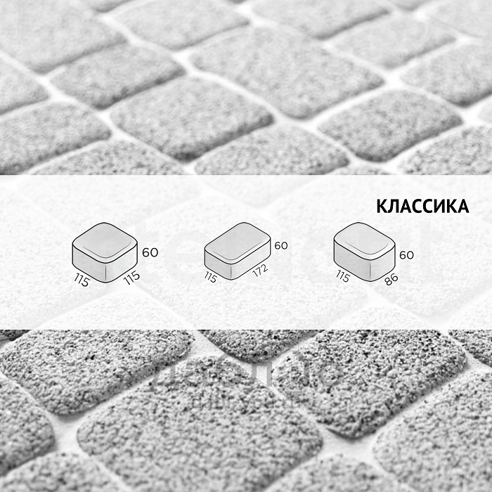 Брусчатка Steingot Классика Bianco Nero. Тротуарная плитка в классическим стиле с ярко выраженными фасками, состоящая из трех камней разных размеров, которые легко сочетать и создавать красивые узоры на мощении. Продажа брусчатки производится кратно целым поддонам!- Высота: 60 мм