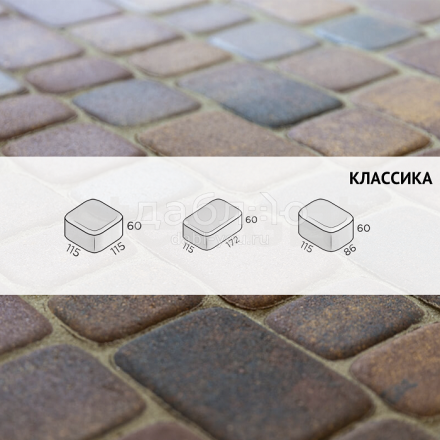 Брусчатка Steingot Классика Агатовый камень (Блэнд). Тротуарная плитка в классическим стиле с ярко выраженными фасками, состоящая из трех камней разных размеров, которые легко сочетать и создавать красивые узоры на мощении. Продажа брусчатки производится кратно целым поддонам!- Высота: 60 мм