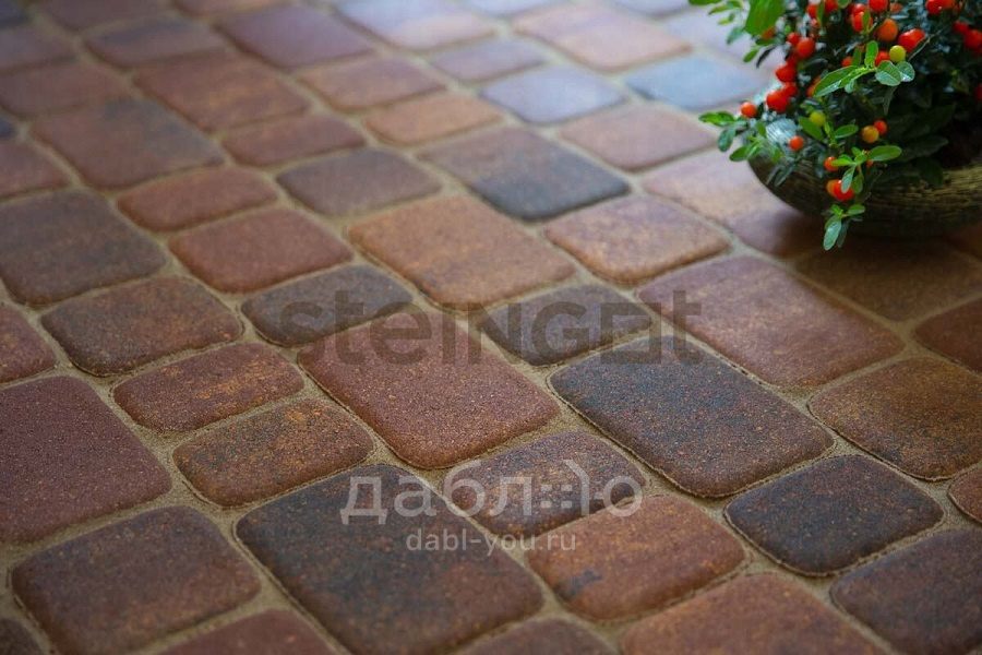 Брусчатка Steingot Классика Блэнд. Тротуарная плитка в классическим стиле с ярко выраженными фасками, состоящая из трех камней разных размеров, которые легко сочетать и создавать красивые узоры на мощении. Продажа брусчатки производится кратно целым поддонам!- Высота: 60 мм