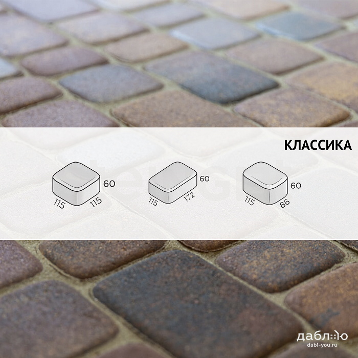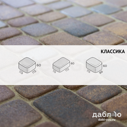 Брусчатка Steingot Классика Блэнд. Тротуарная плитка в классическим стиле с ярко выраженными фасками, состоящая из трех камней разных размеров, которые легко сочетать и создавать красивые узоры на мощении. Продажа брусчатки производится кратно целым поддонам!- Высота: 60 мм