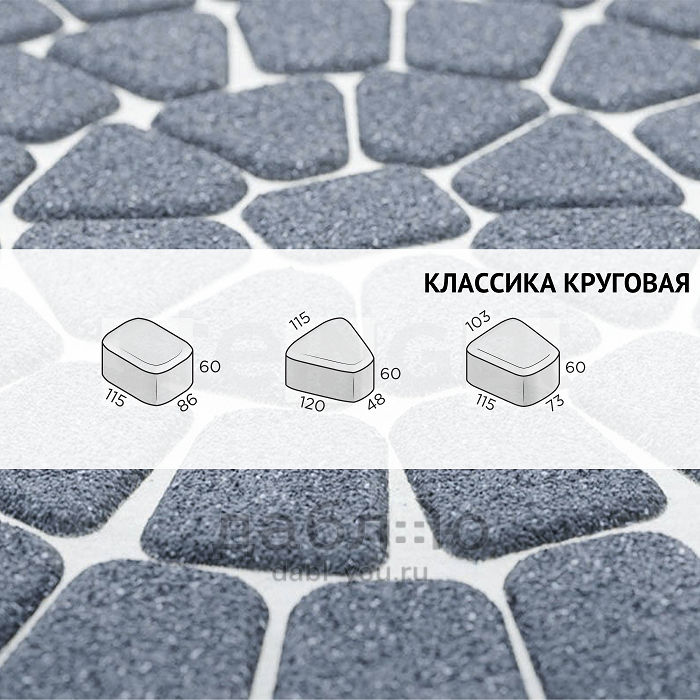 Брусчатка Steingot Классика круговая Grafito Scuro. Тротуарная плитка в классическим стиле с ярко выраженными фасками, состоящая из трех камней разных размеров, которые легко сочетать и создавать красивые узоры на мощении. Форма предназначена для выполнения простых круговых и сложных радиусных узоров. Продажа брусчатки производится кратно целым поддонам!- Высота: 60 мм