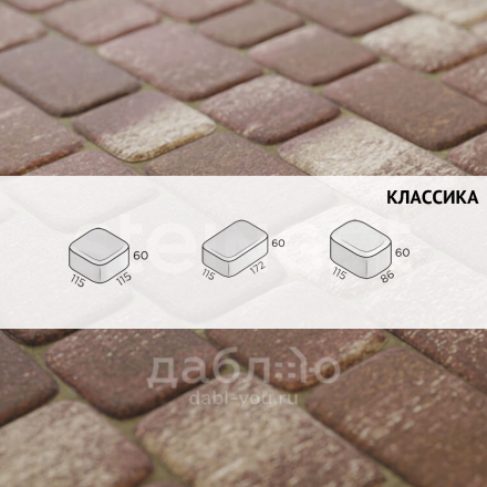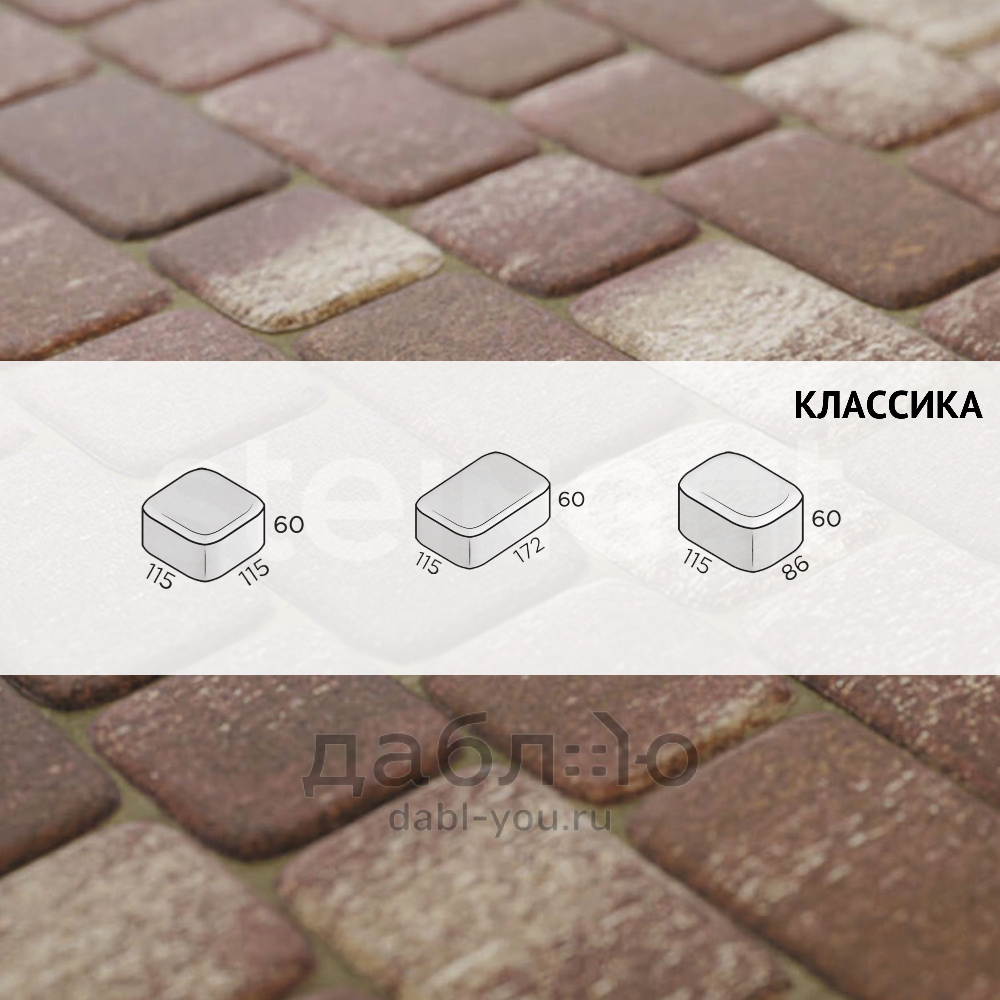 Брусчатка Steingot Классика Мокко. Тротуарная плитка в классическим стиле с ярко выраженными фасками, состоящая из трех камней разных размеров, которые легко сочетать и создавать красивые узоры на мощении. Продажа брусчатки производится кратно целым поддонам!- Высота: 60 мм