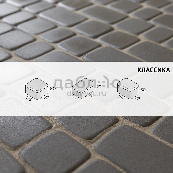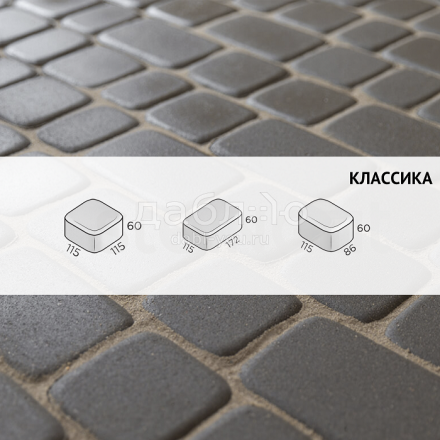 Брусчатка Steingot Классика серая. Тротуарная плитка в классическим стиле с ярко выраженными фасками, состоящая из трех камней разных размеров, которые легко сочетать и создавать красивые узоры на мощении. Продажа брусчатки производится кратно целым поддонам!- Высота: 60 мм
