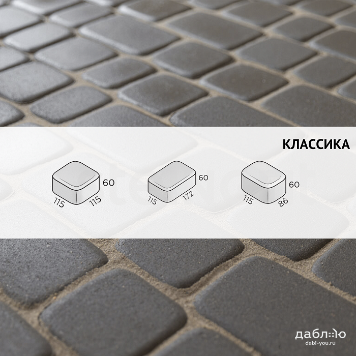 Брусчатка Steingot Классика серая. Тротуарная плитка в классическим стиле с ярко выраженными фасками, состоящая из трех камней разных размеров, которые легко сочетать и создавать красивые узоры на мощении. Продажа брусчатки производится кратно целым поддонам!- Высота: 60 мм