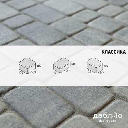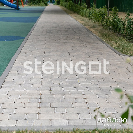 Брусчатка Steingot Классика Штайн Сильвер. Тротуарная плитка в классическим стиле с ярко выраженными фасками, состоящая из трех камней разных размеров, которые легко сочетать и создавать красивые узоры на мощении. Продажа брусчатки производится кратно целым поддонам!- Высота: 60 мм
