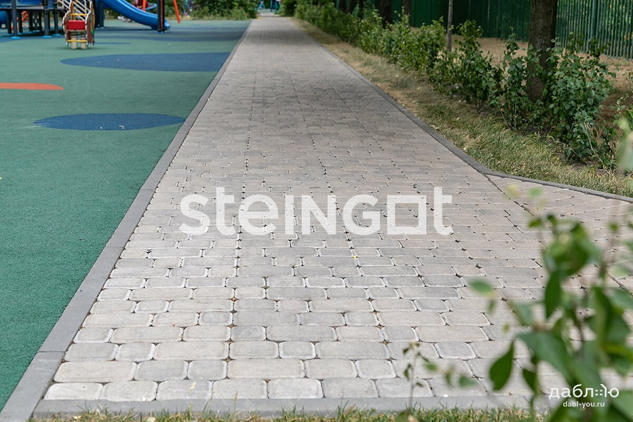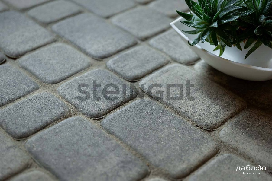 Брусчатка Steingot Классика Штайн Сильвер. Тротуарная плитка в классическим стиле с ярко выраженными фасками, состоящая из трех камней разных размеров, которые легко сочетать и создавать красивые узоры на мощении. Продажа брусчатки производится кратно целым поддонам!- Высота: 60 мм