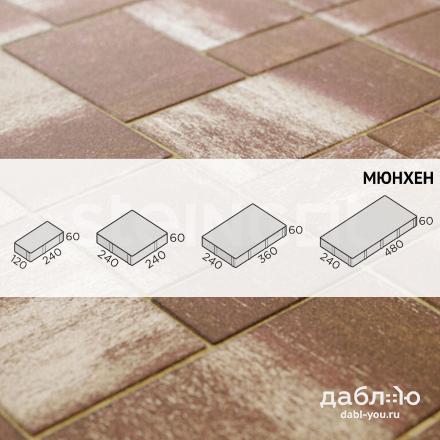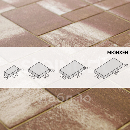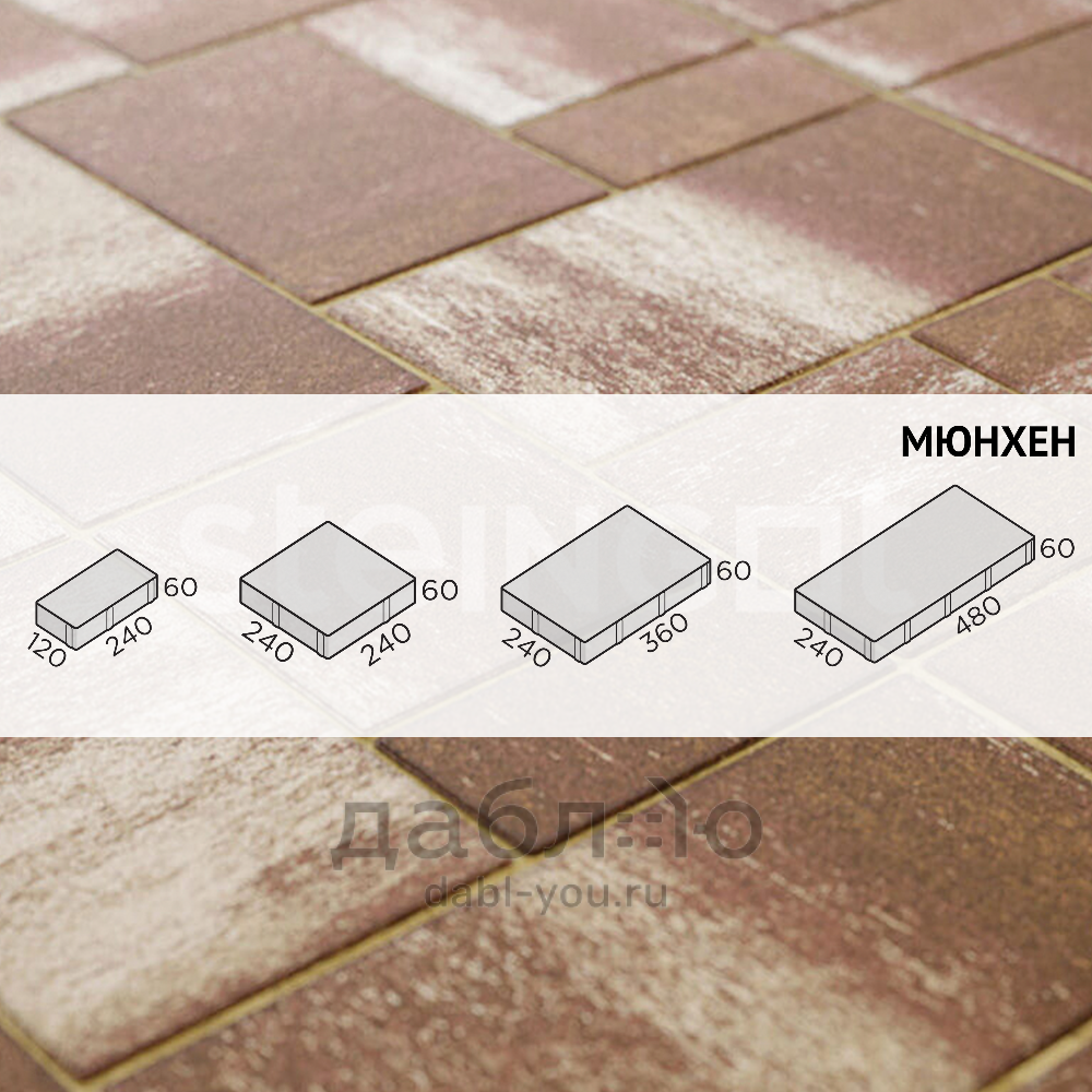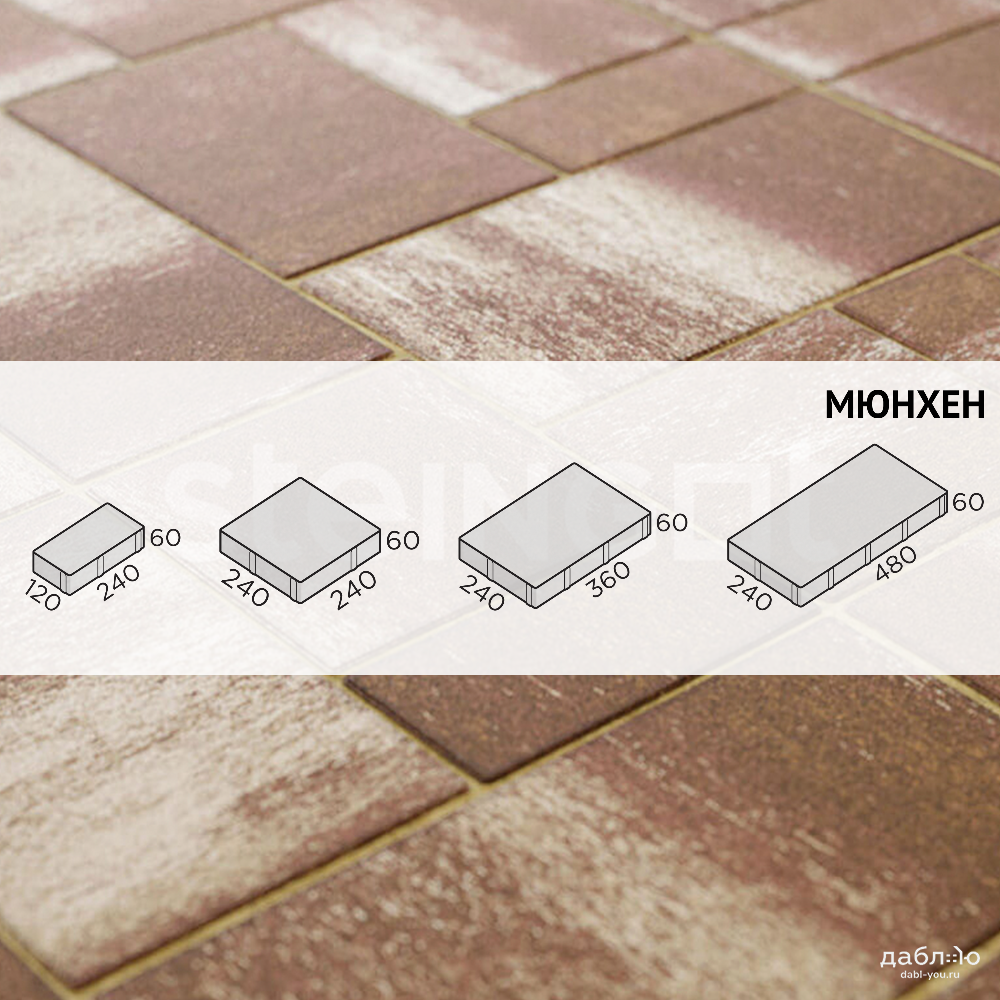 Брусчатка Steingot Мюнхен Мокко. Состоящая из четырех камней разного размера форма «Мюнхен» позволяет использовать при укладке огромное количество схем раскладки: линейную, разнонаправленную, паркетную и многие другие. Оригинальная форма, созданная специально для воплощения разнообразных и неповторимых дизайнов благоустройства. Продажа брусчатки производится кратно целым поддонам!- Высота: 60 мм