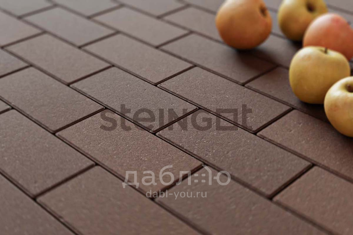 Брусчатка Steingot темно-коричневая 200х100х60 (верхний прокрас, минифаска). Классическая форма брусчатки в новом исполнении - наличие фаски меньшего размера позволяет создать более ровное покрытие без швов, делая передвижение на ней более комфортным. Продажа брусчатки производится кратно целым поддонам!- Высота: 60 мм