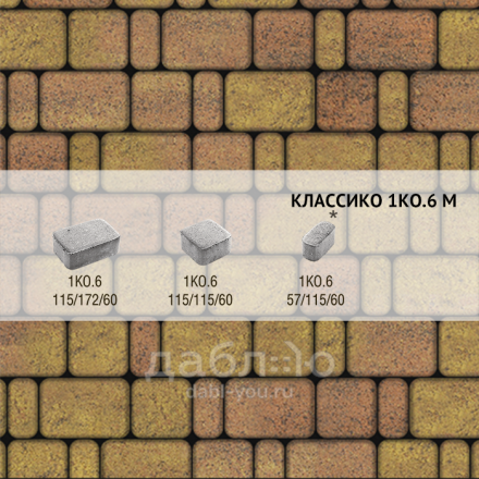 Брусчатка Выбор Классико Листопад 1КО.6 Саванна. Бетонная тротуарная плитка из серии Листопад. Ее отличает характерная пестрота и насыщенность цвета.Высота: 60 мм