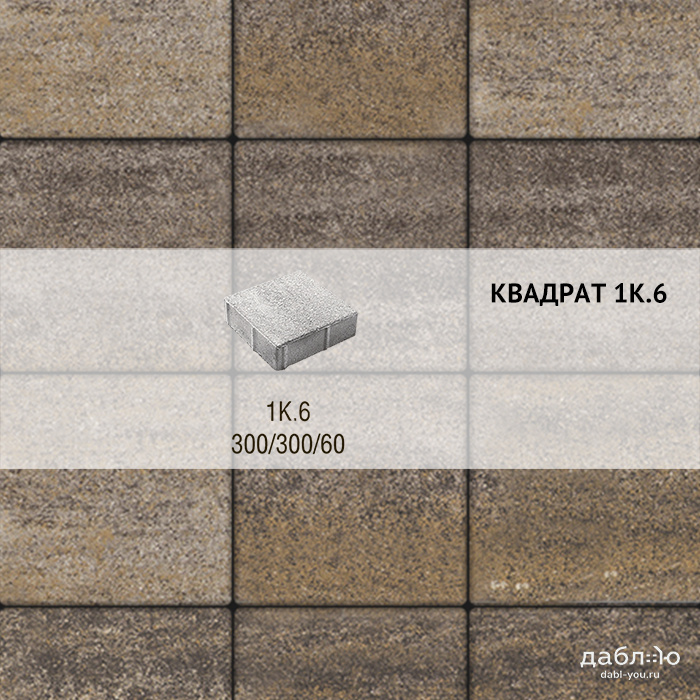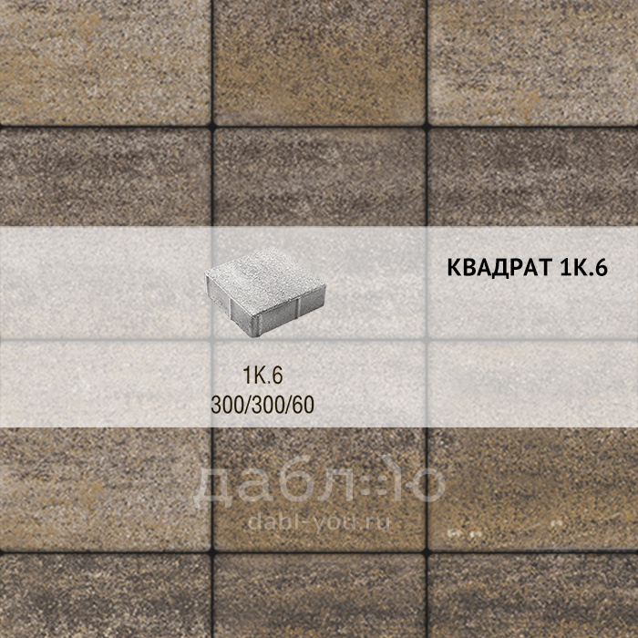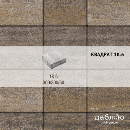 Брусчатка Выбор Квадрат Искусственный камень 1К.6 Доломит. Крупноформатная бетонная брусчатка 300*300 мм, с гладкой фактурой пестрого оттенка. Толщина 60 мм позволяет применять ее для дорожек и парковок. Удобна в укладке благодаря большому размеру и наличию фаски. Цвет брусчатки отлично сочетается другими материалами для ландшафтного дизайна и мощения.Высота: 60 мм